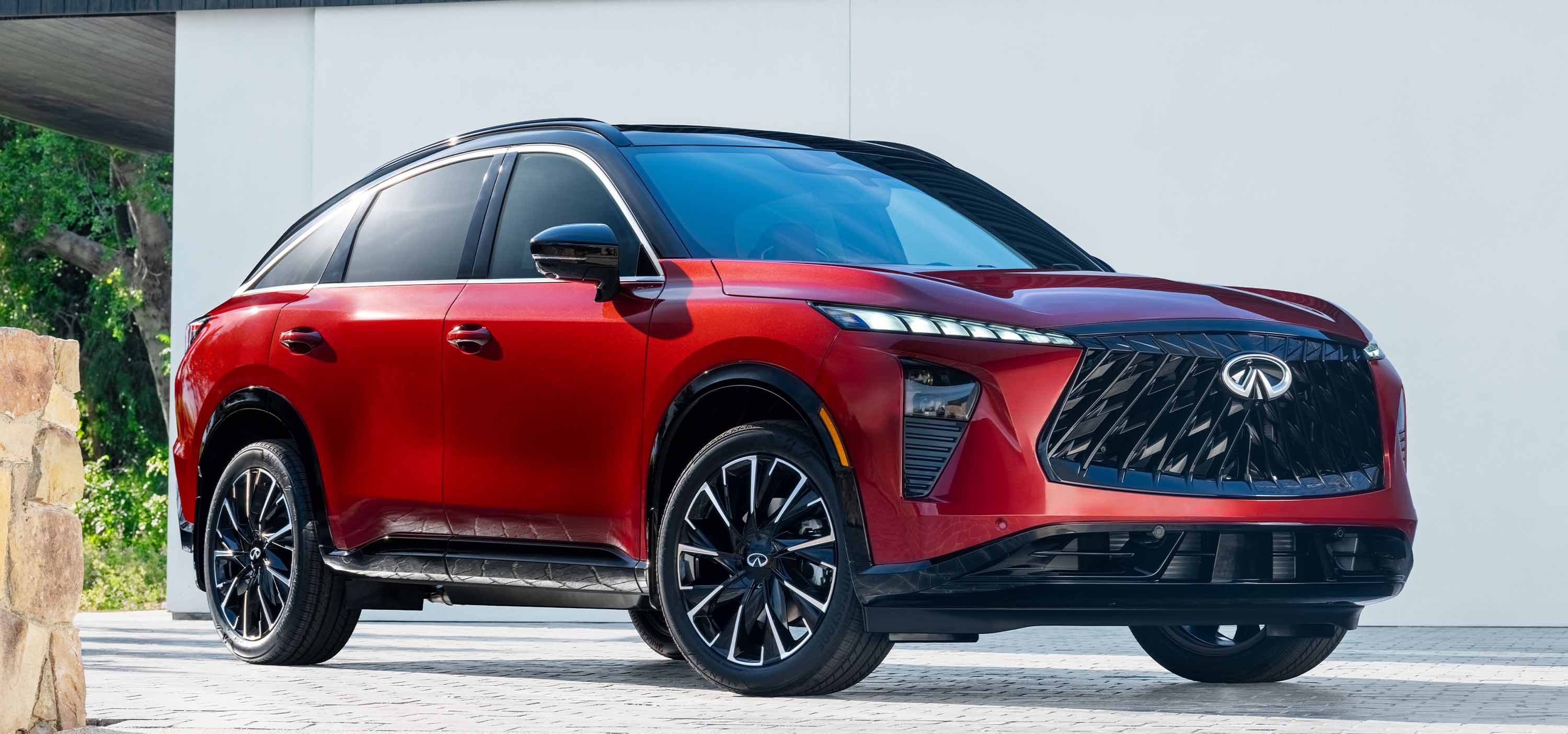 Up front, the three-dimensional grille subtly inspired by bamboo forests adds depth and character, complemented by Infiniti’s signature lighting and a contrasting black roof. The new Sunfire Red paint, with its multi-layer finish and fine detailing, gives the SUV a richer look that changes slightly depending on the light.